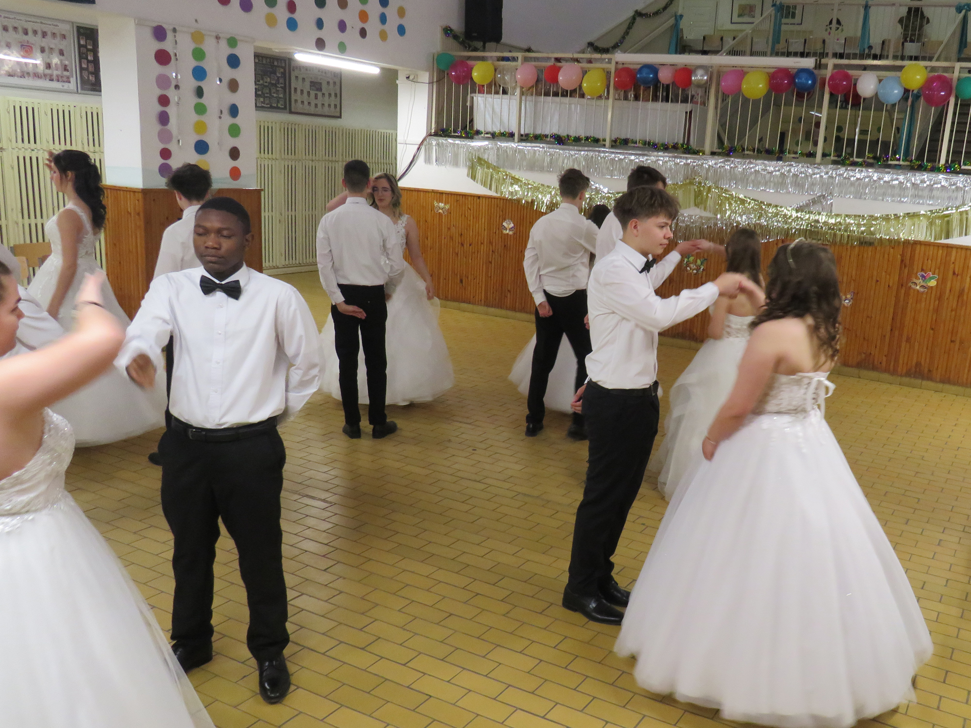 A hófehér ruhába öltözött végzős hölgyeink fekete csokornyakkendős urakkal bemutatott felejthetetlen tánca idén is mosolyt és könnyeket csalt a nézők szemébe.