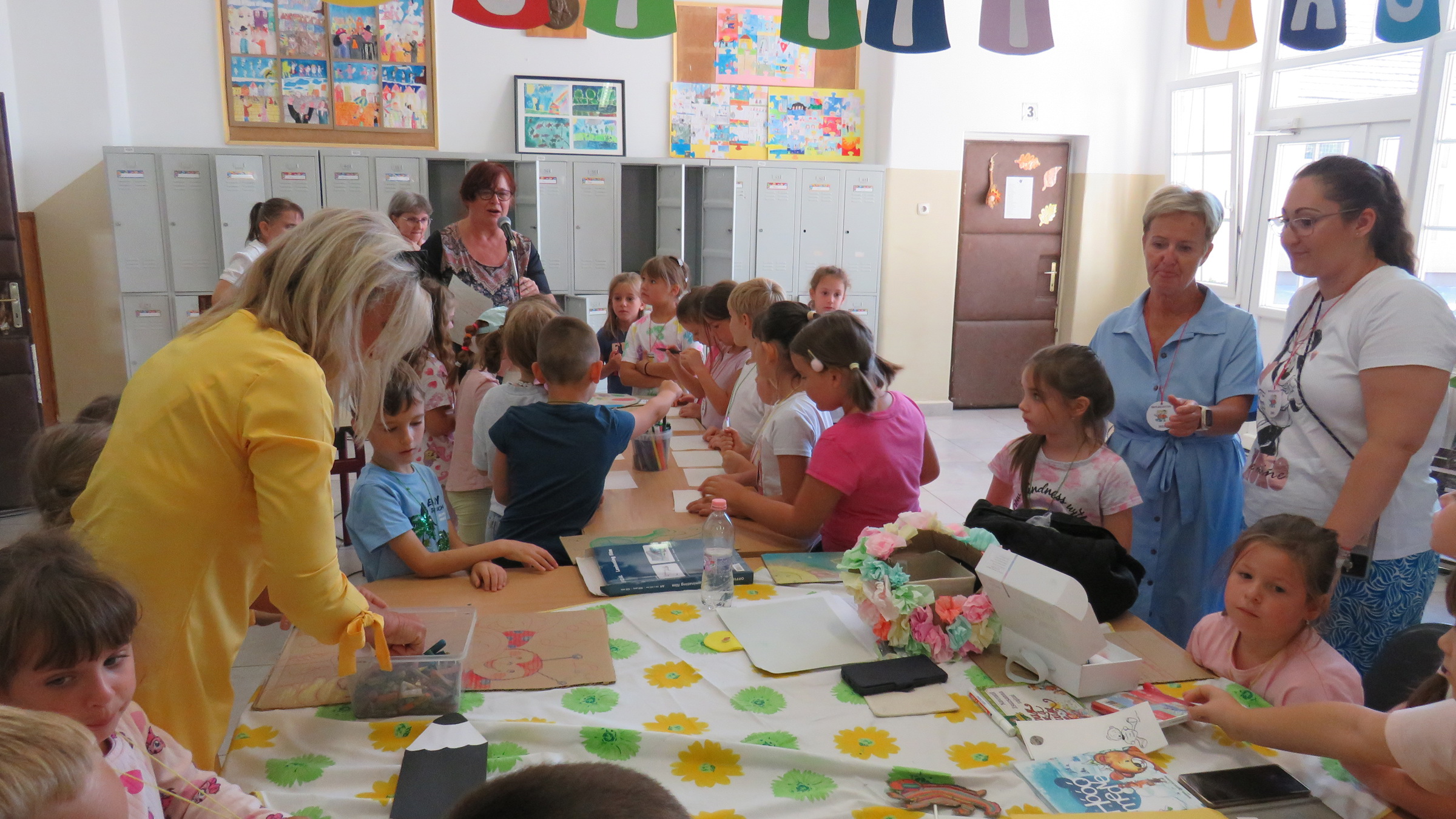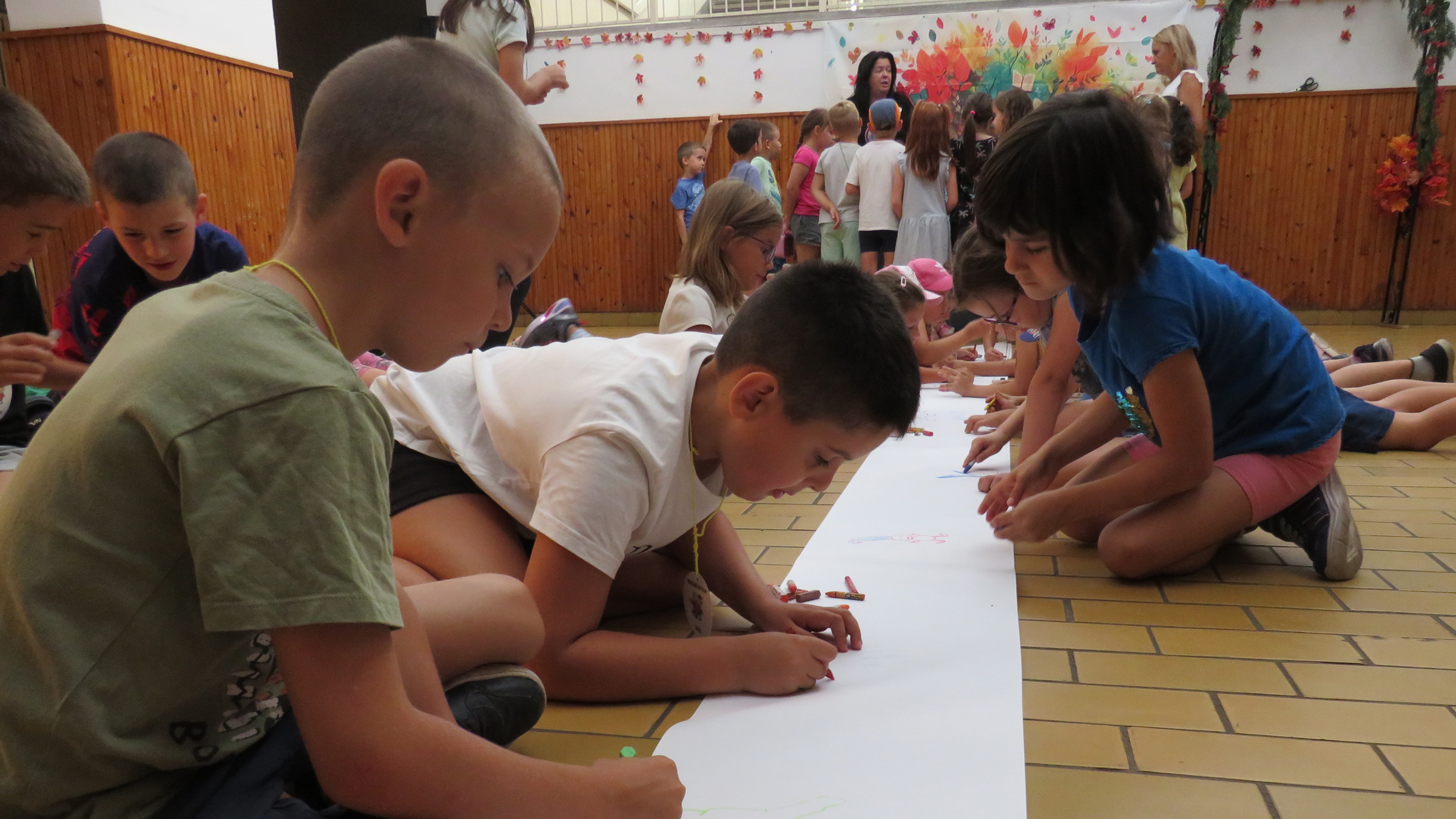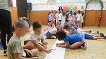 A harmadik napon a tábor zárásaként sorversenyeken küzdöttek meg egymással az osztályok, majd rajzokban örökítették meg nyári élményeiket. Köszönjük a tábor lebonyolításában résztvevők munkáját! Segítségükkel sikeresen valósult meg, hogy elsőseink örömteli élményekkel kezdhették meg a tanévet.