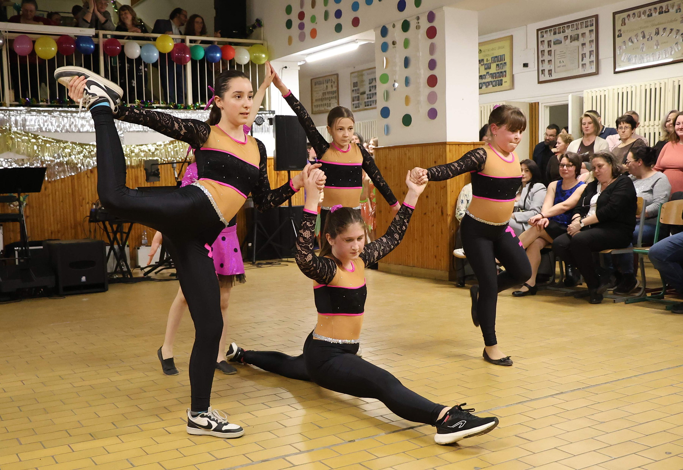 Február 14-én szombaton a hagyományos Farsangi Batyus Bálra került sor, amelyet lázas készülődés előzött meg. A köszöntők után rövid műsort láthattak a résztvevők. A nyolcadikosok nyitótáncát követően iskolánk akrobatikus rock and roll csoportjának bemutatója következett, majd a sort nevelőink tanártánca zárta. Az ezt követő, hajnalig tartó táncmulatságot csak a tombolahúzás szakította meg, ahol számos értékes nyeremény talált gazdára.