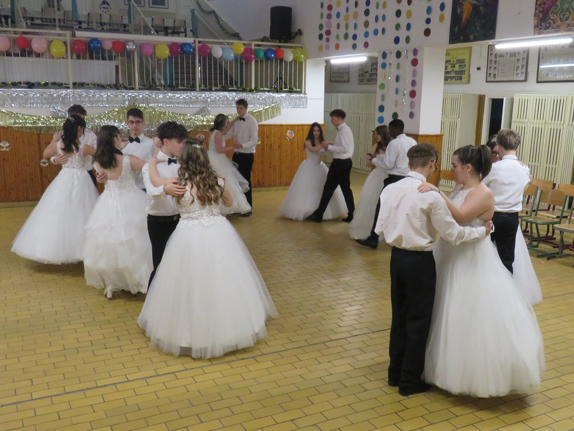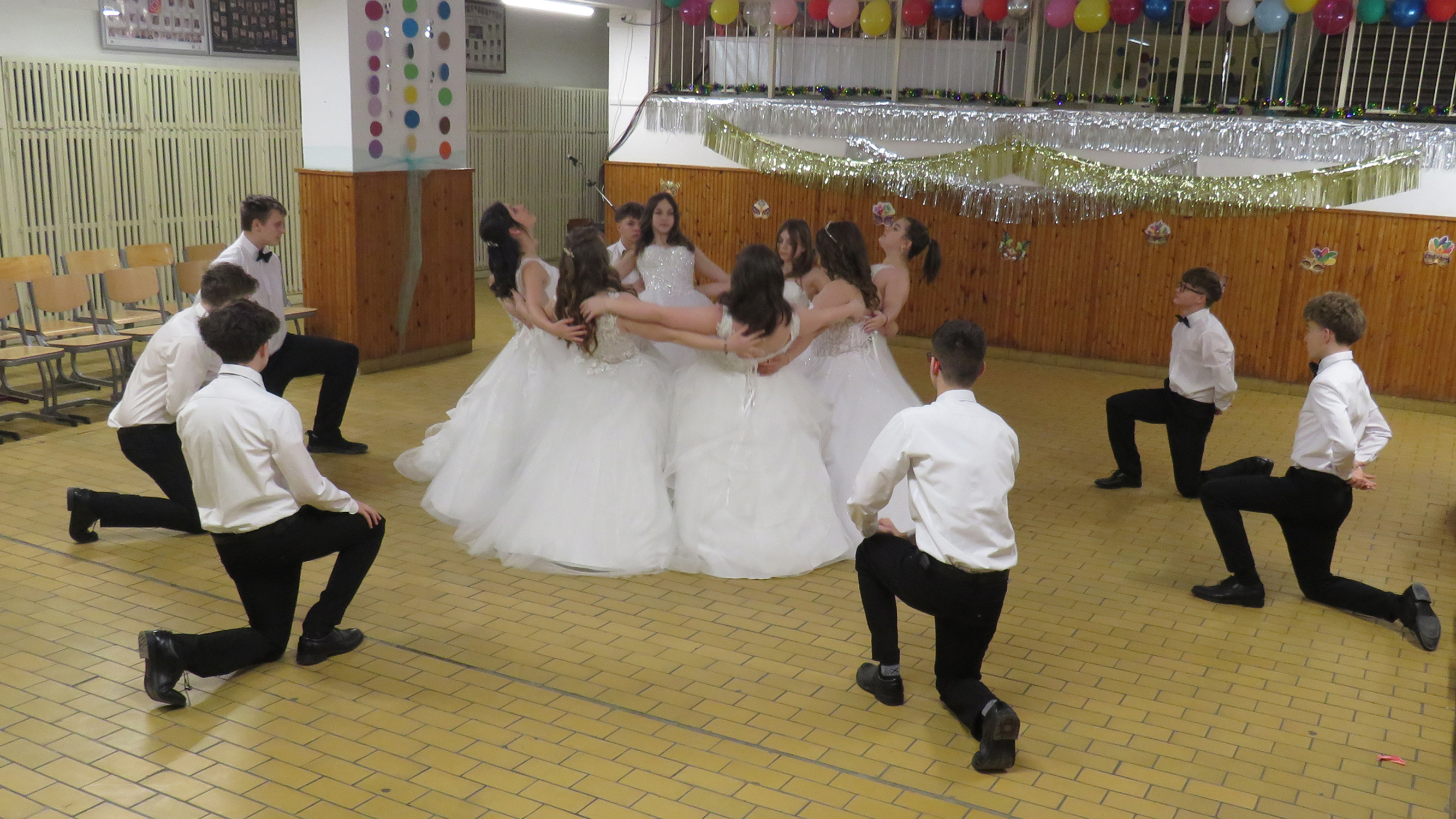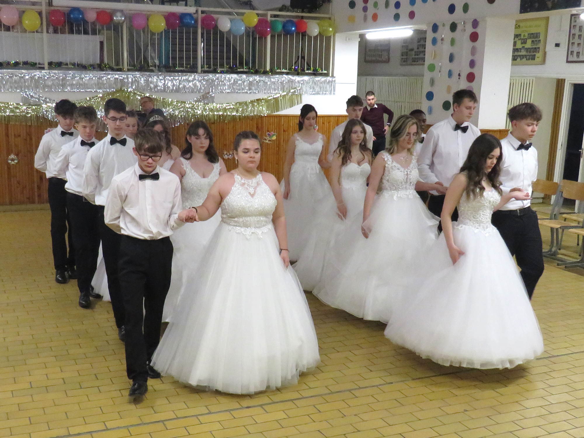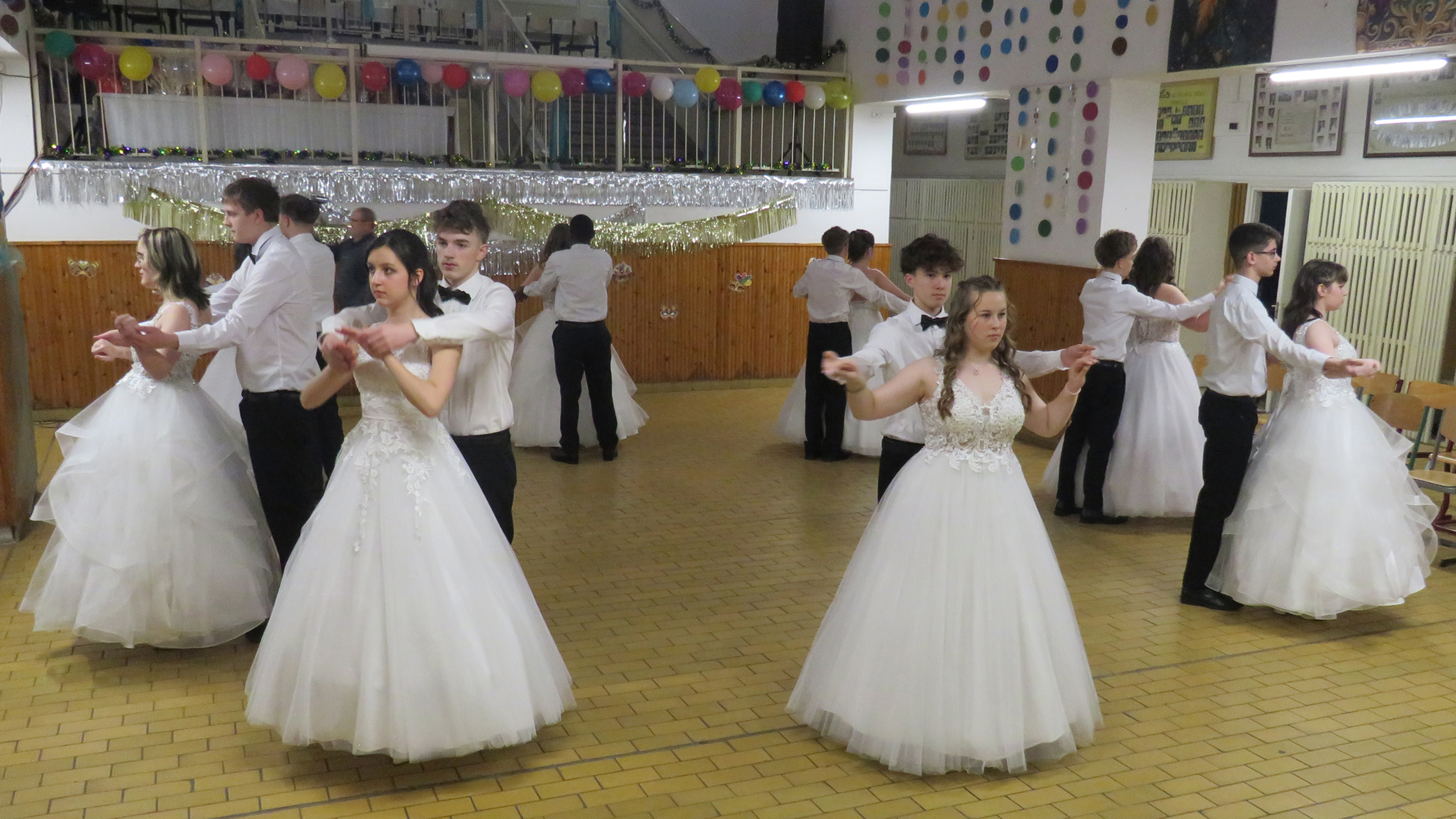 A hófehér ruhába öltözött végzős hölgyeink fekete csokornyakkendős urakkal bemutatott felejthetetlen tánca idén is mosolyt és könnyeket csalt a nézők szemébe.