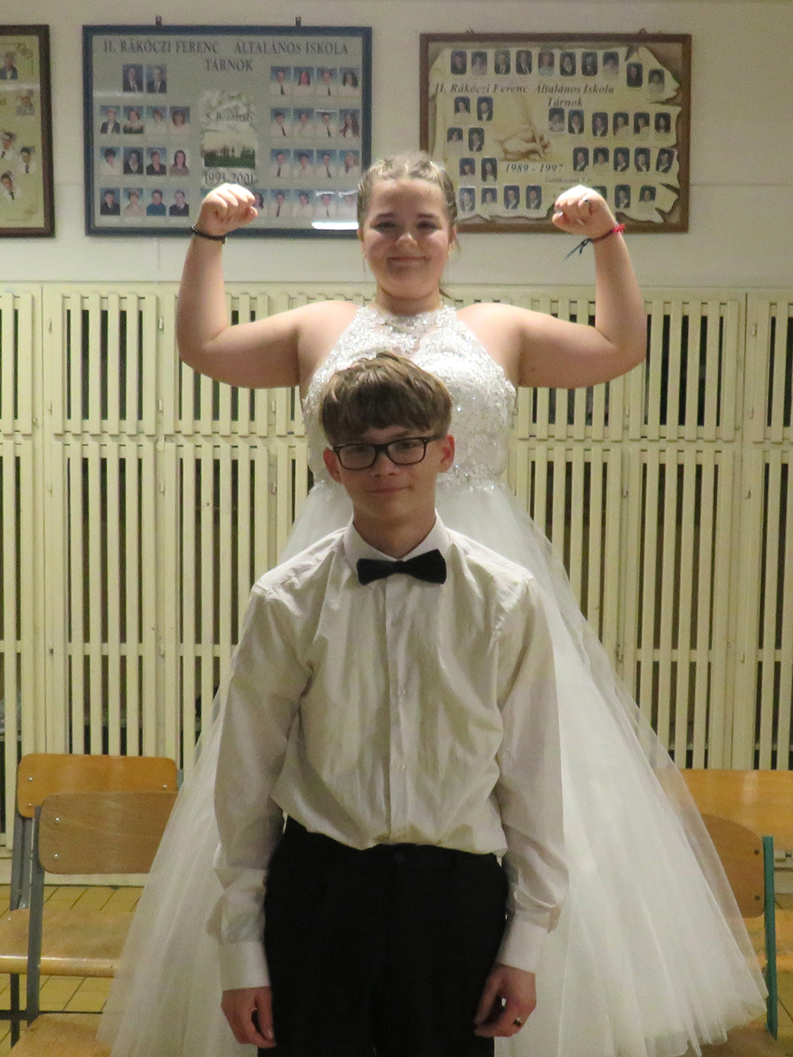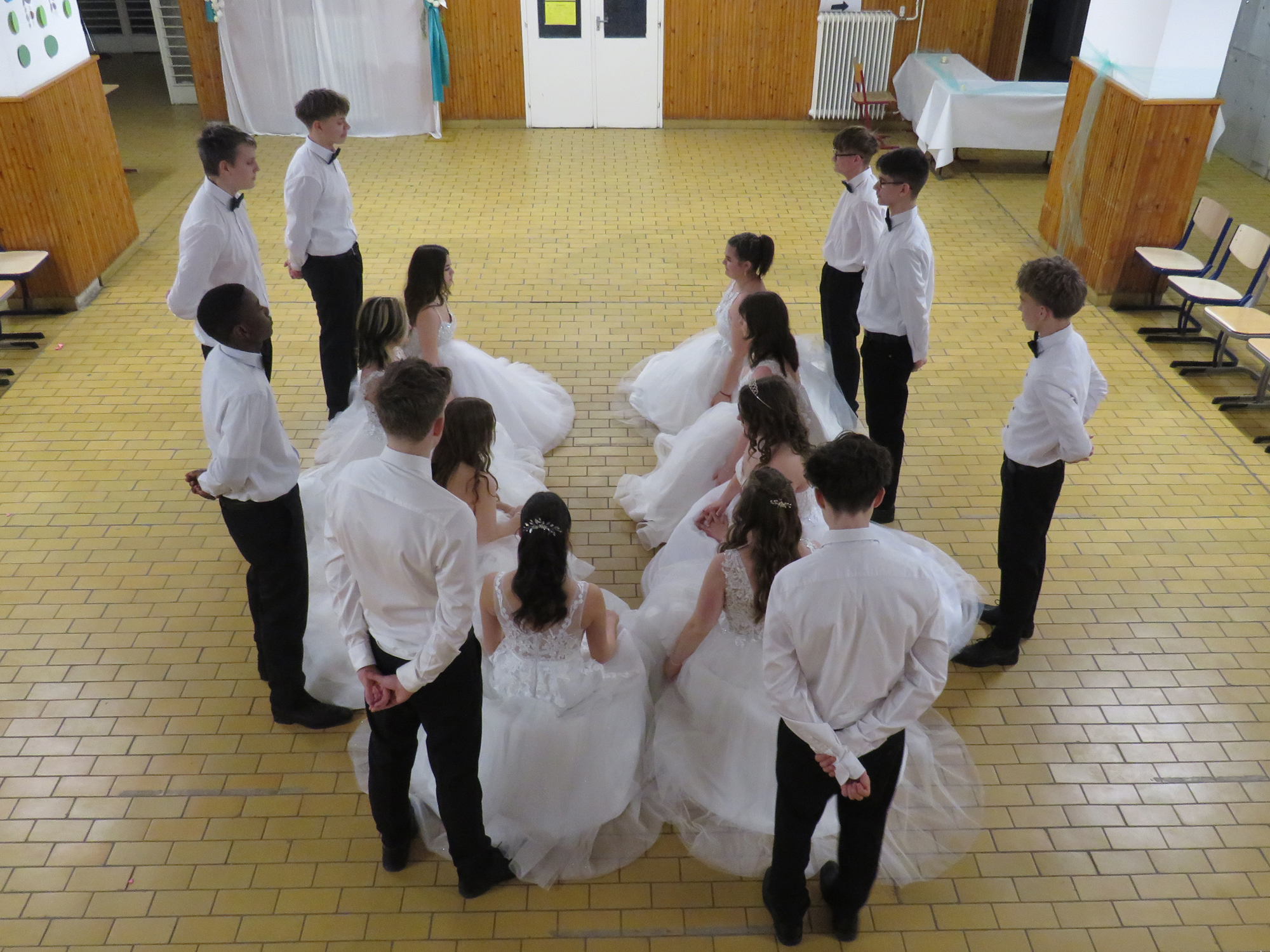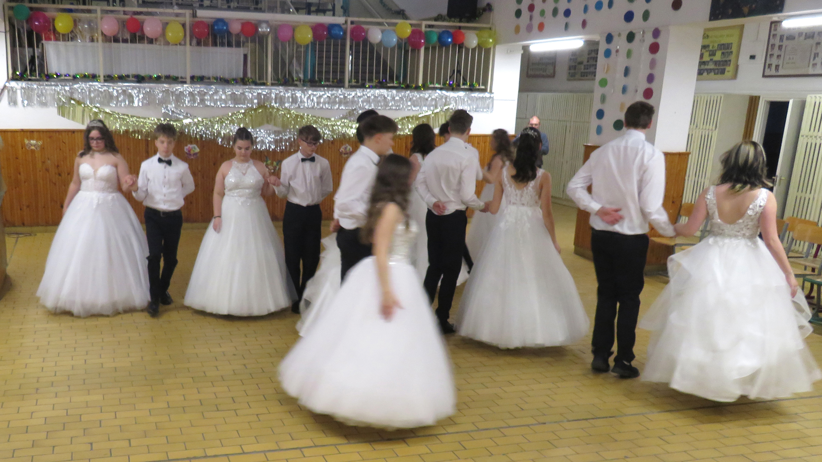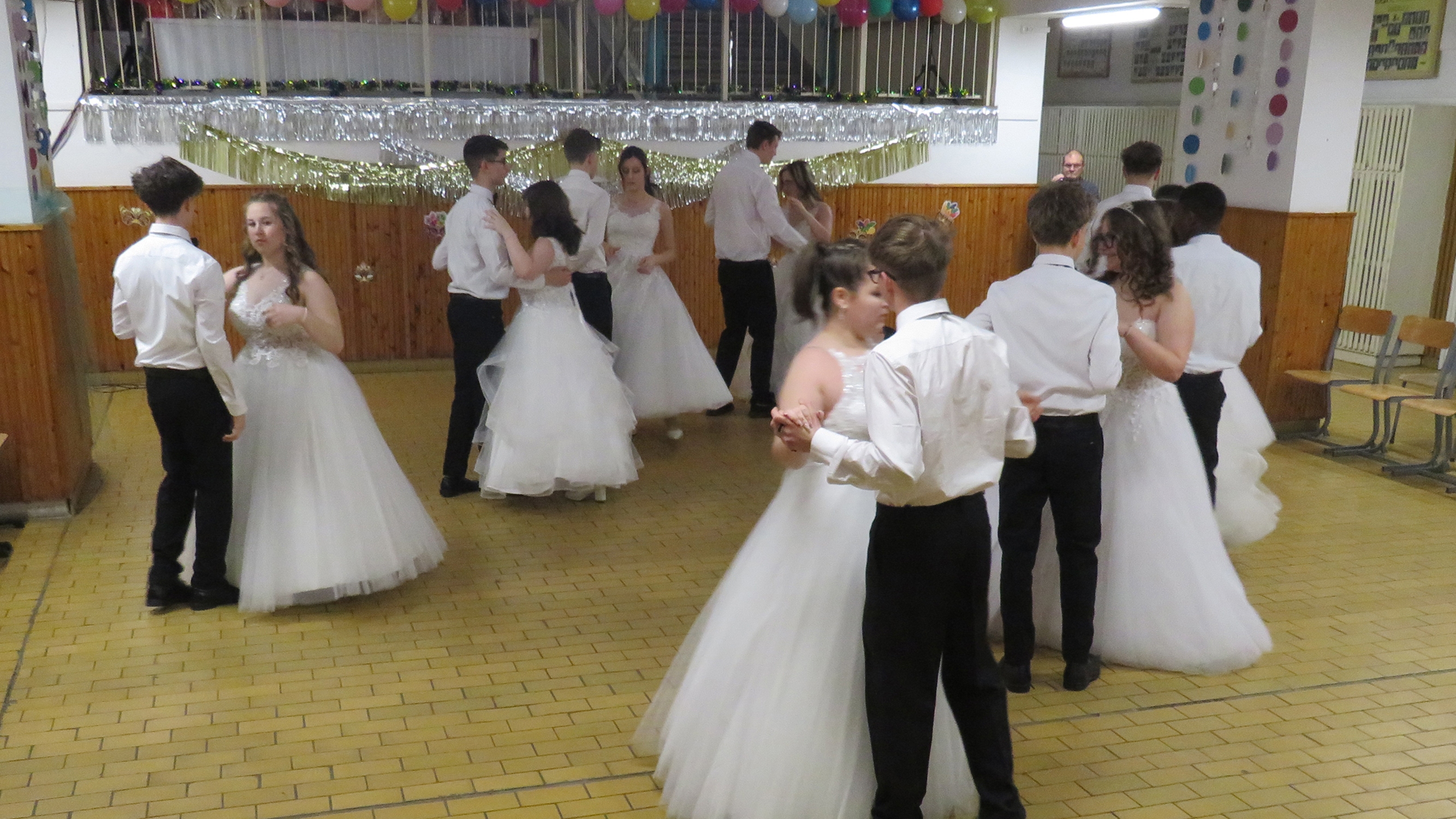 A hófehér ruhába öltözött végzős hölgyeink fekete csokornyakkendős urakkal bemutatott felejthetetlen tánca idén is mosolyt és könnyeket csalt a nézők szemébe.